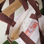 Features: DTF heat-pressed print. One shoulder strap, standard hand straps, front pocket and inner top zipper.